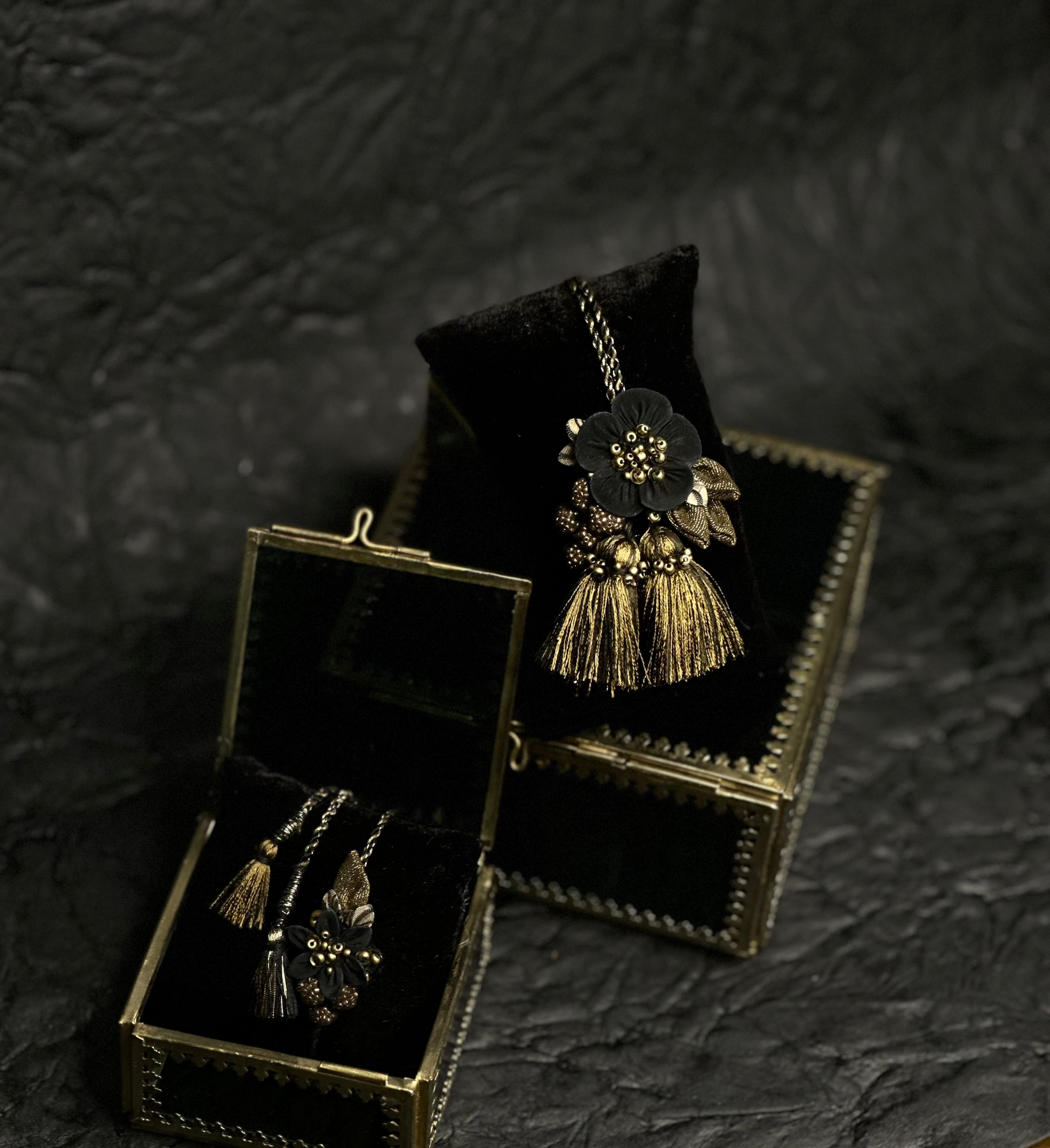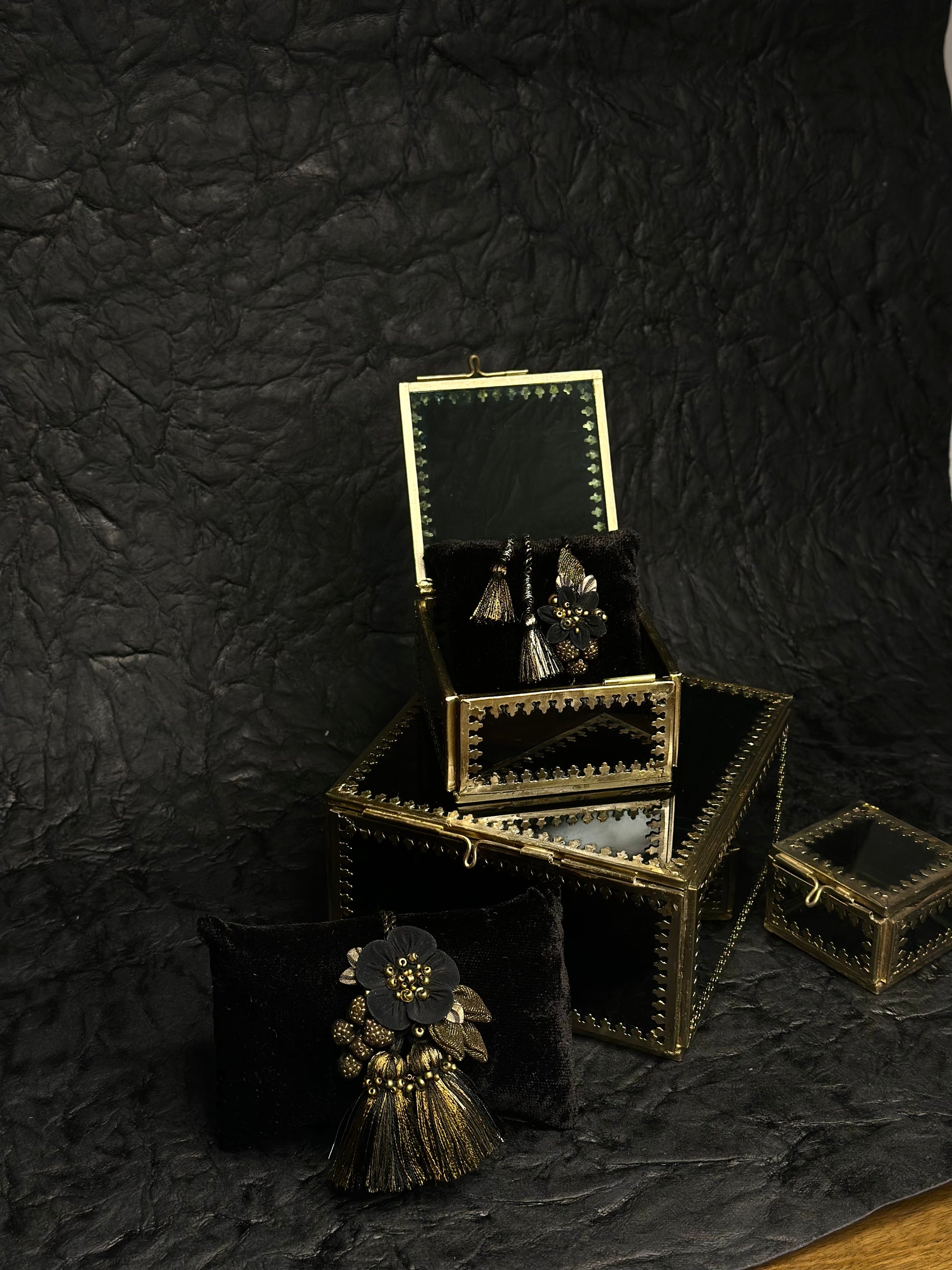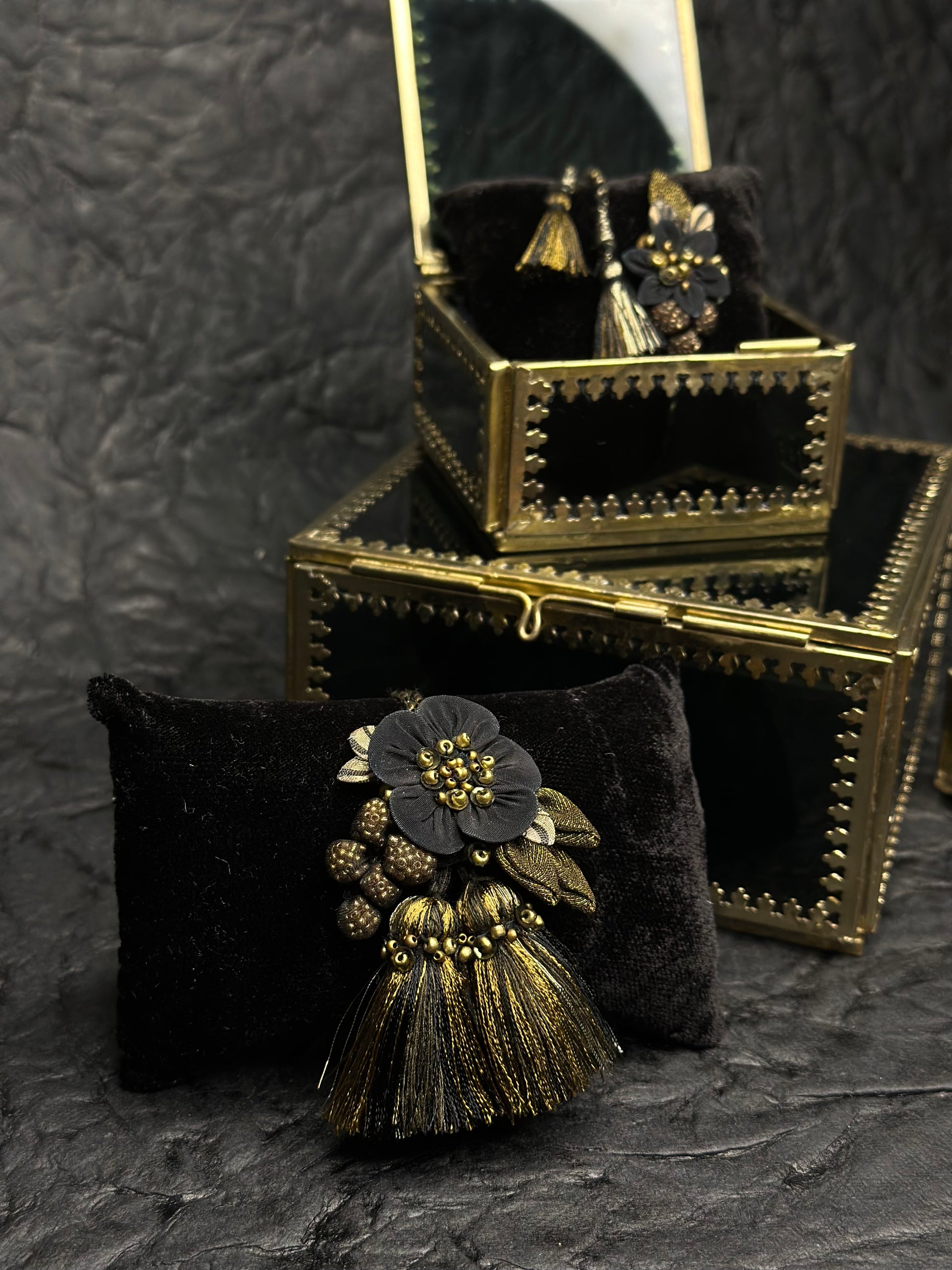 The Celestial Shimmer Loomba Set in Black is designed for moments that matter. With deep black threads and a crystal-shimmer centerpiece, this rakhi and loomba set brings together strength and elegance in a way that feels effortlessly modern. Perfect for your brother who walks with quiet confidence, and your bhabhi who brings grace into every room — this set celebrates love, respect, and shared tradition in a bold, timeless tone.