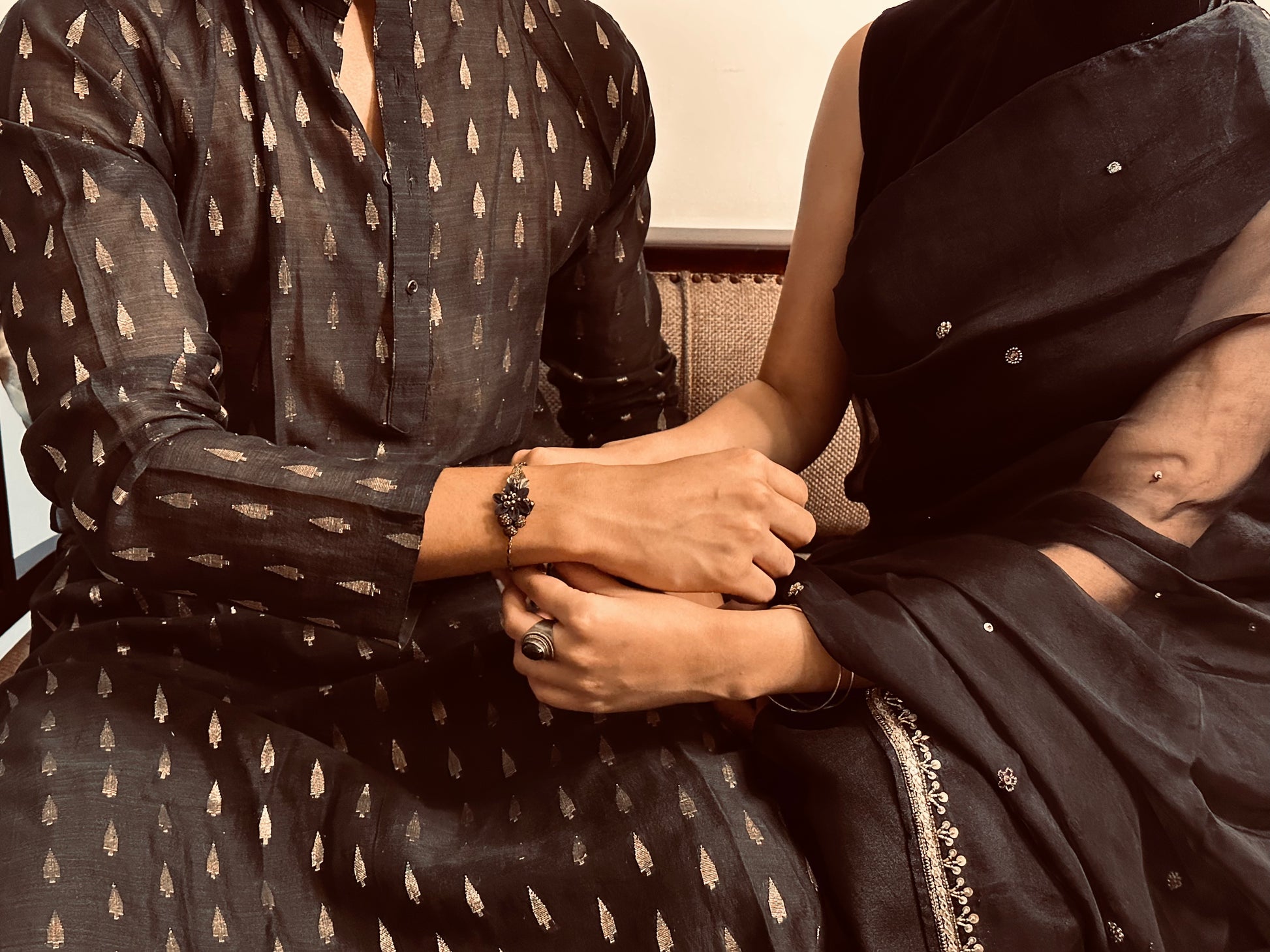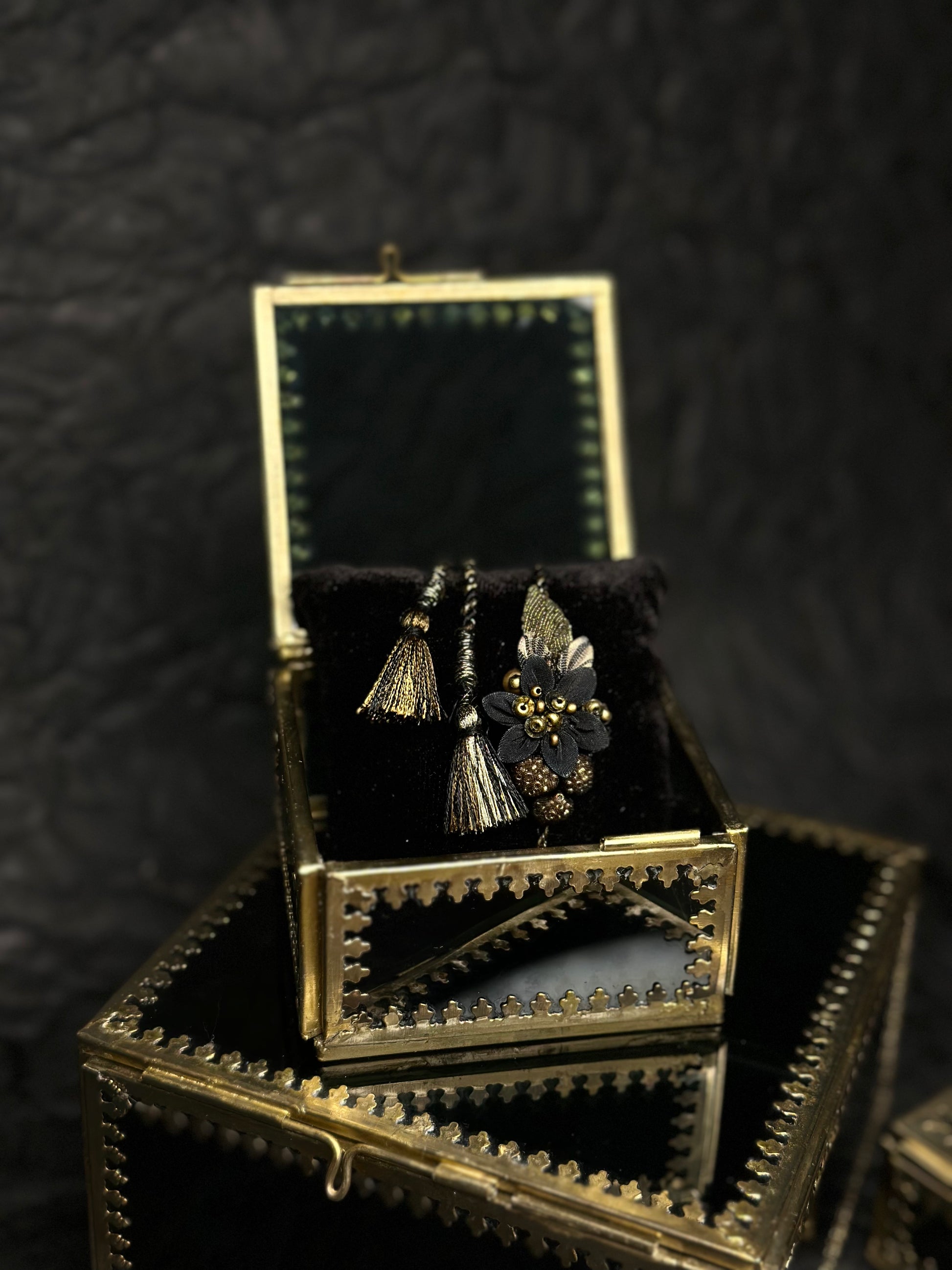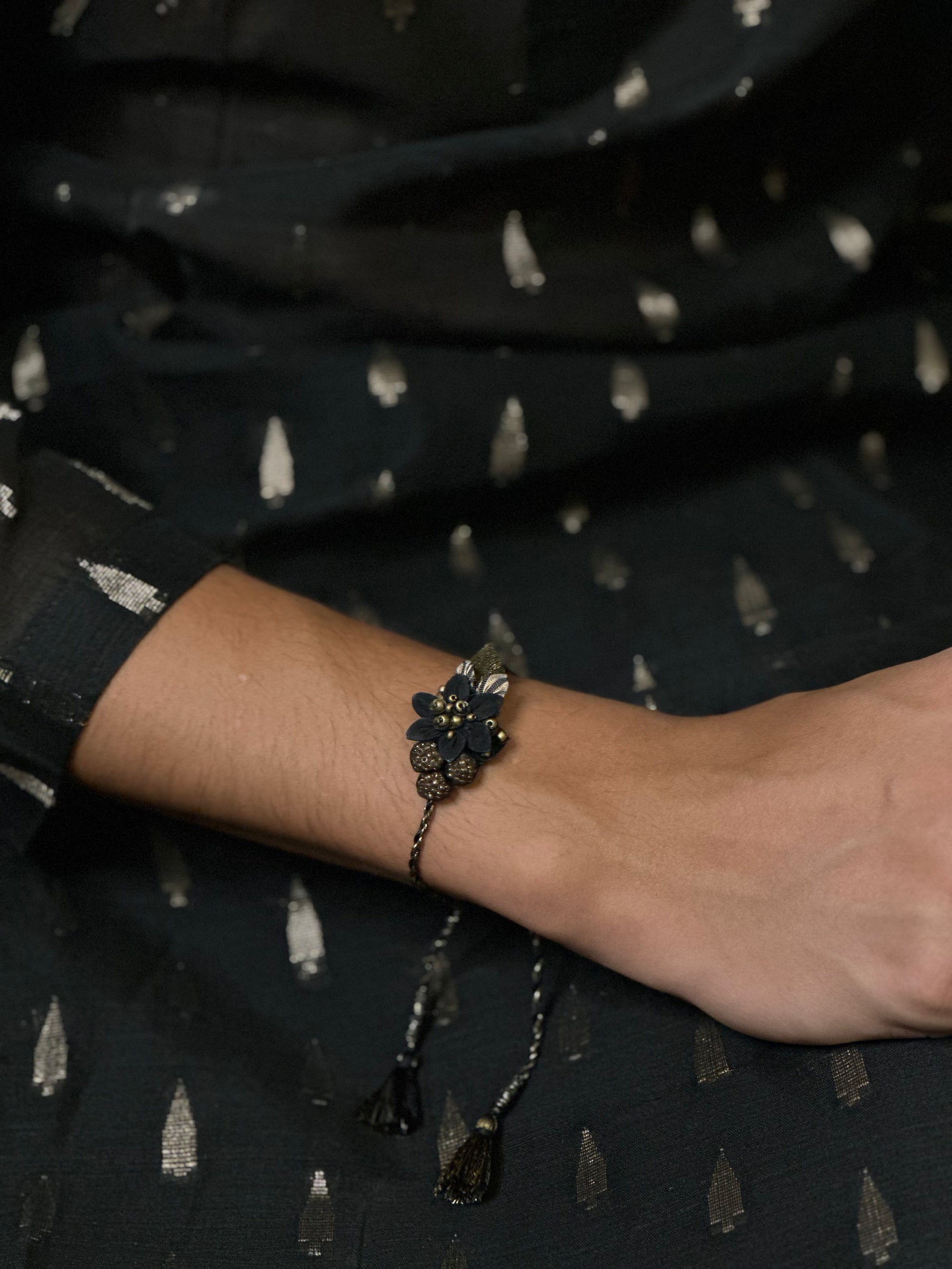 Smooth, hand-braided black threads give this rakhi a distinctive, masculine edge. It’s strong, clean, and effortlessly stylish — a thread that holds not just tradition, but personality.