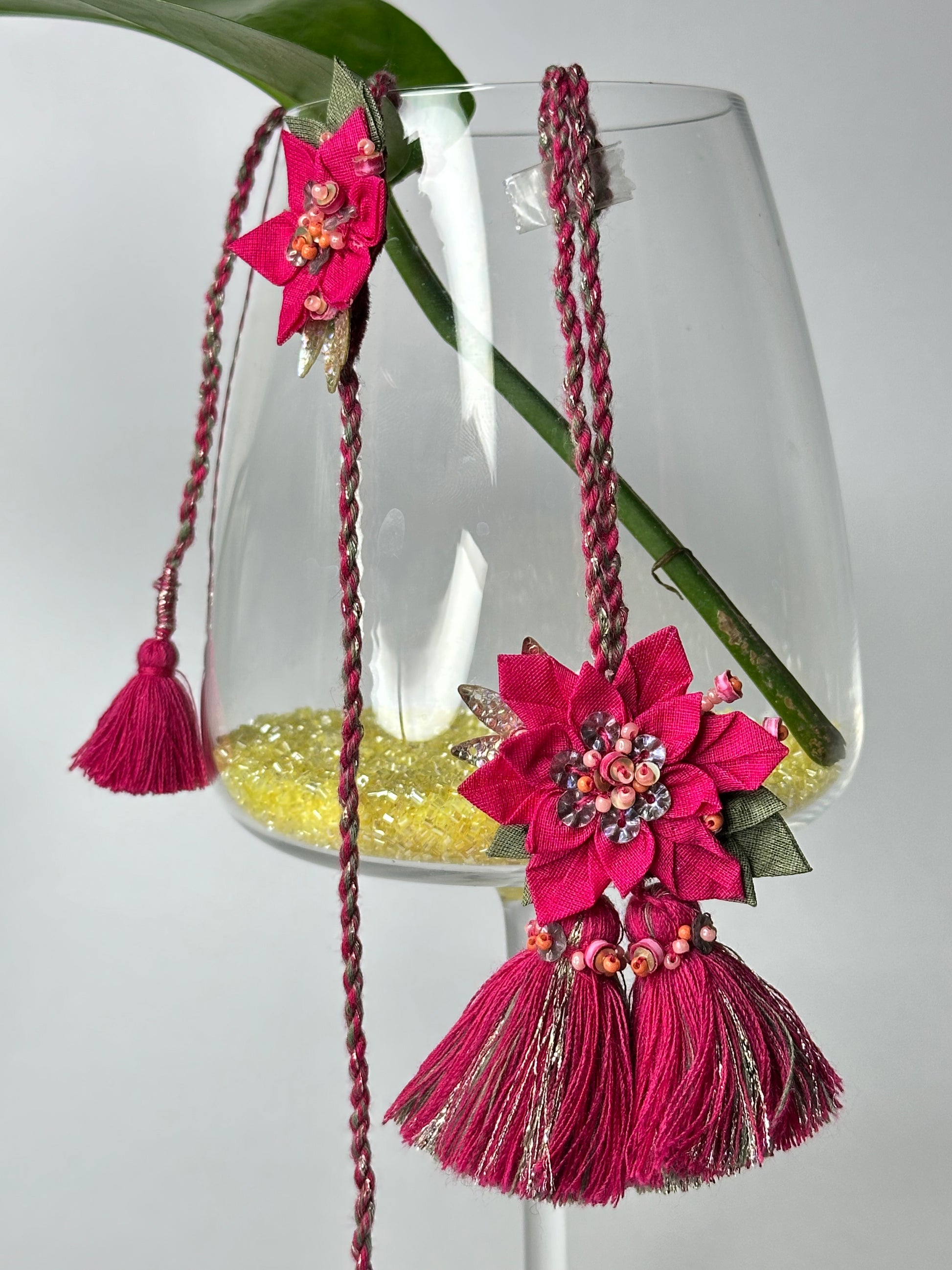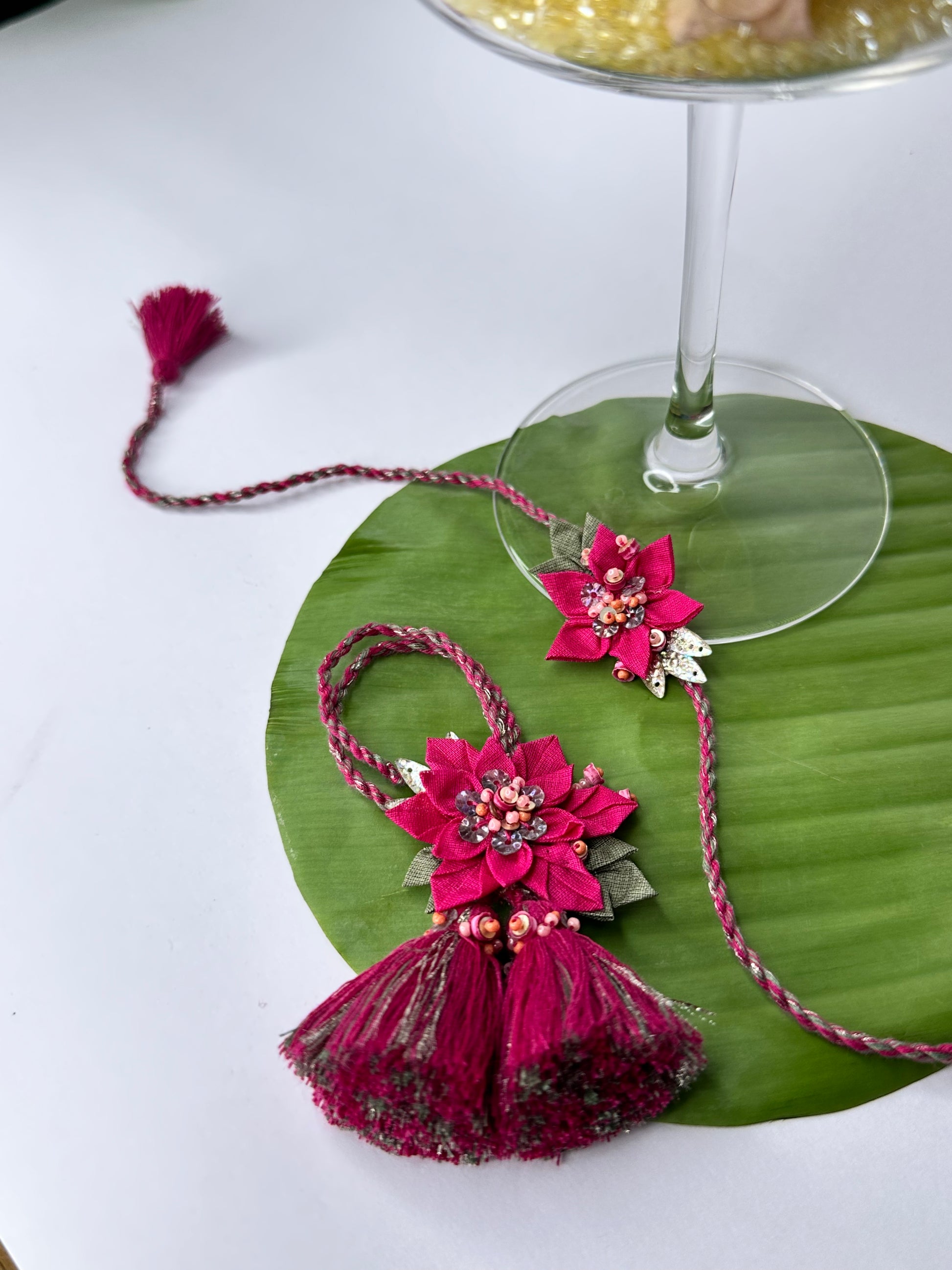 Origami Floral Rakhi Loomba Set - Rani Pink