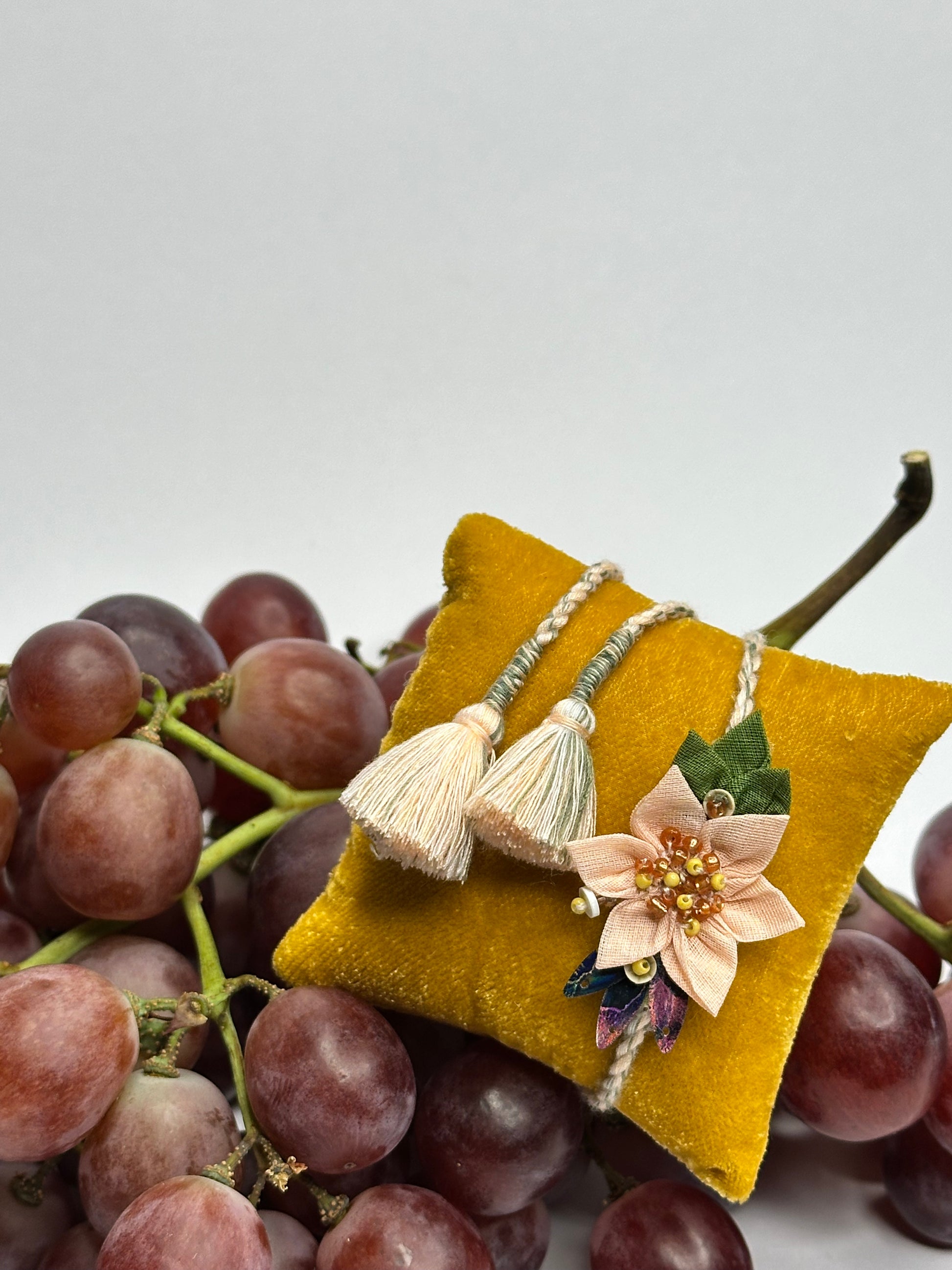 The blush-toned thread is soothing and sweet, hand-braided to add a graceful softness that’s visually calming and easy on the skin.